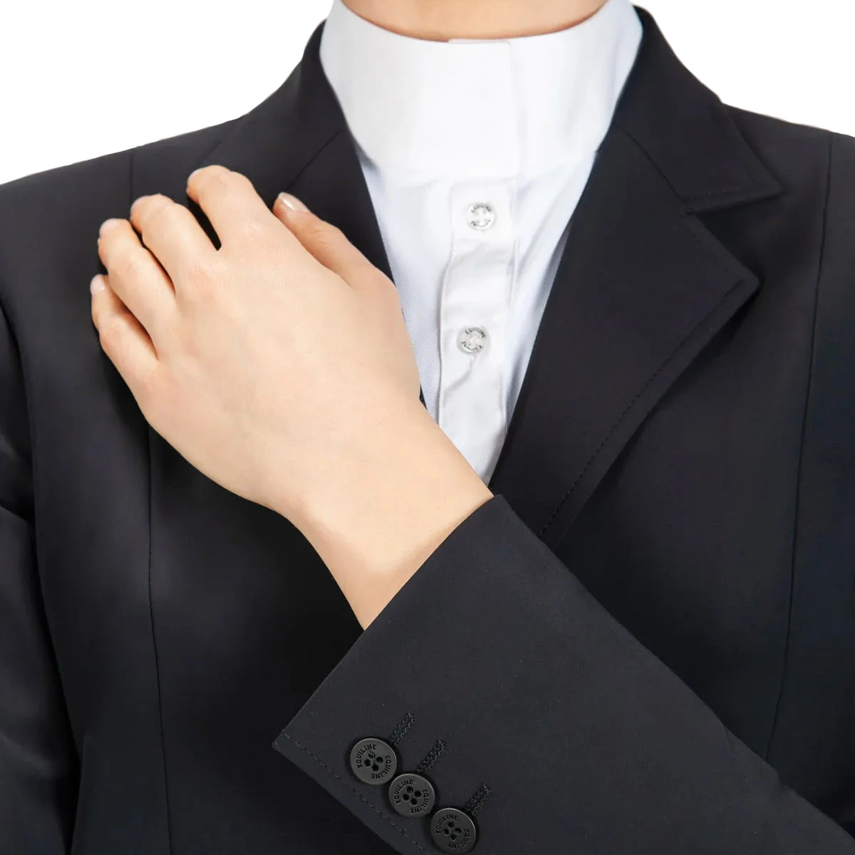 We love the Equiline Women’s Hayley Hunter Show Coat because it is traditionally styled for the Hunter and Equitation show ring. The coat is cut slightly longer than a standard competition jumping jacket and is tailored for a very flattering fit. The coat boasts Equiline’s proprietary X-Cool Evo 4-way stretch fabric, which allows for enhanced breathability and freedom of movement. The lightweight feel makes it ideal for equestrians competing in hot weather climates. Additional features include discreet branding, a double vent in the back, faux flap pockets in the front, and flat matte buttons.