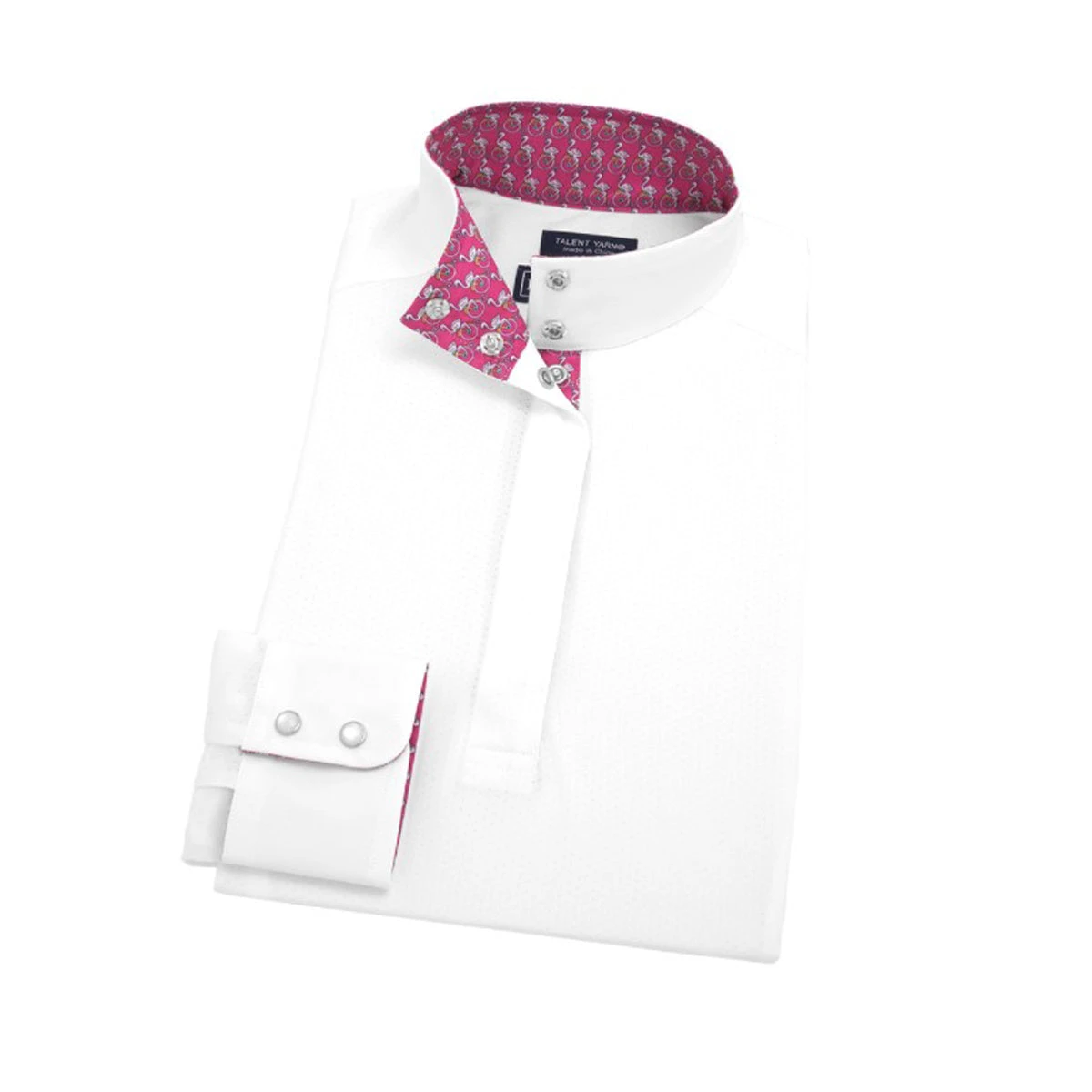 We love this shirt because of the classic white styling, coupled with cute fashion graphics on the inner collar & sleeves.  Show up, show out, & stand out at the show in this stylish straight collar short sleeve show shirt from Essex Classics. Â