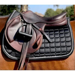 With a monocrown design, patent leather anatomical flash noseband, pillowy soft white padding and matching leather reins with thin rubber lining on the inside and stops. Every feature of this beautiful bridle is designed for comfort and functionality. The patent noseband with black padding is accented by a clear crystal patent leather snap-on browband. This bridle is classic and flattering, with the patent finish making it ideal for competitions. Premium Grade European vegetable tanned Leather, ultra softNappa leather padding for comfort.