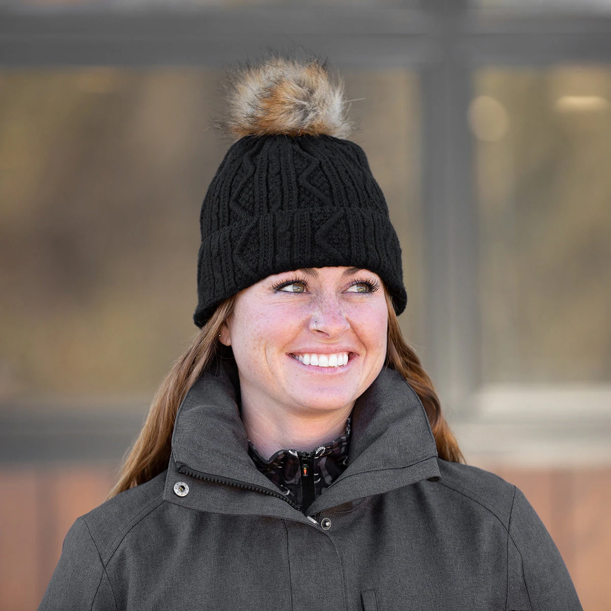 We love this Kerrits Kable Knit Pom Hat because of the fun fluffy top, & cozy cable knit style. Feel fun & fabulous for all of fall & winter in this bold, beautiful hat.  You’ll receive style merits when you dress in Kerrits.